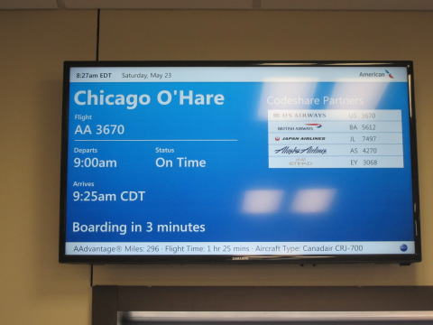 さて、定刻どおりアメリカン・エアが出発。シカゴまで1時間程のフライト。