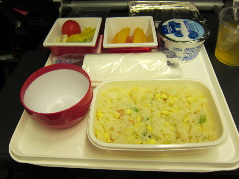その後夜食(朝食?)が出て、日本到着の2時間前に朝食?