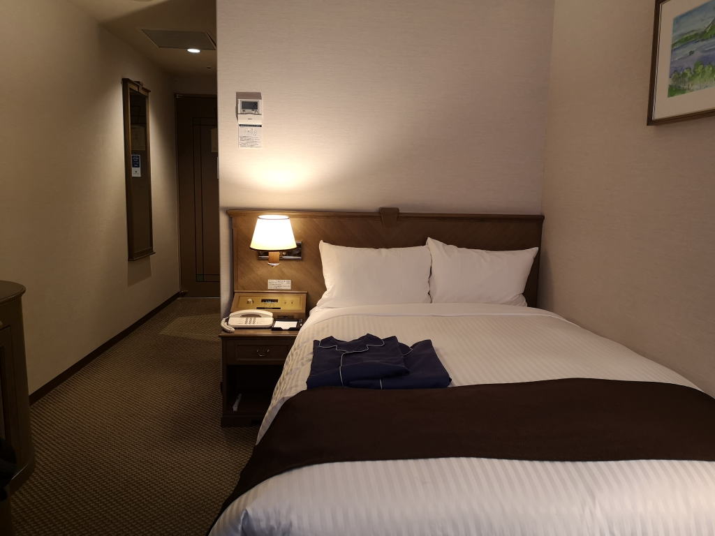 ホテルの部屋はシングルですが、ベッドはセミダブル。部屋も比較的広いですね。