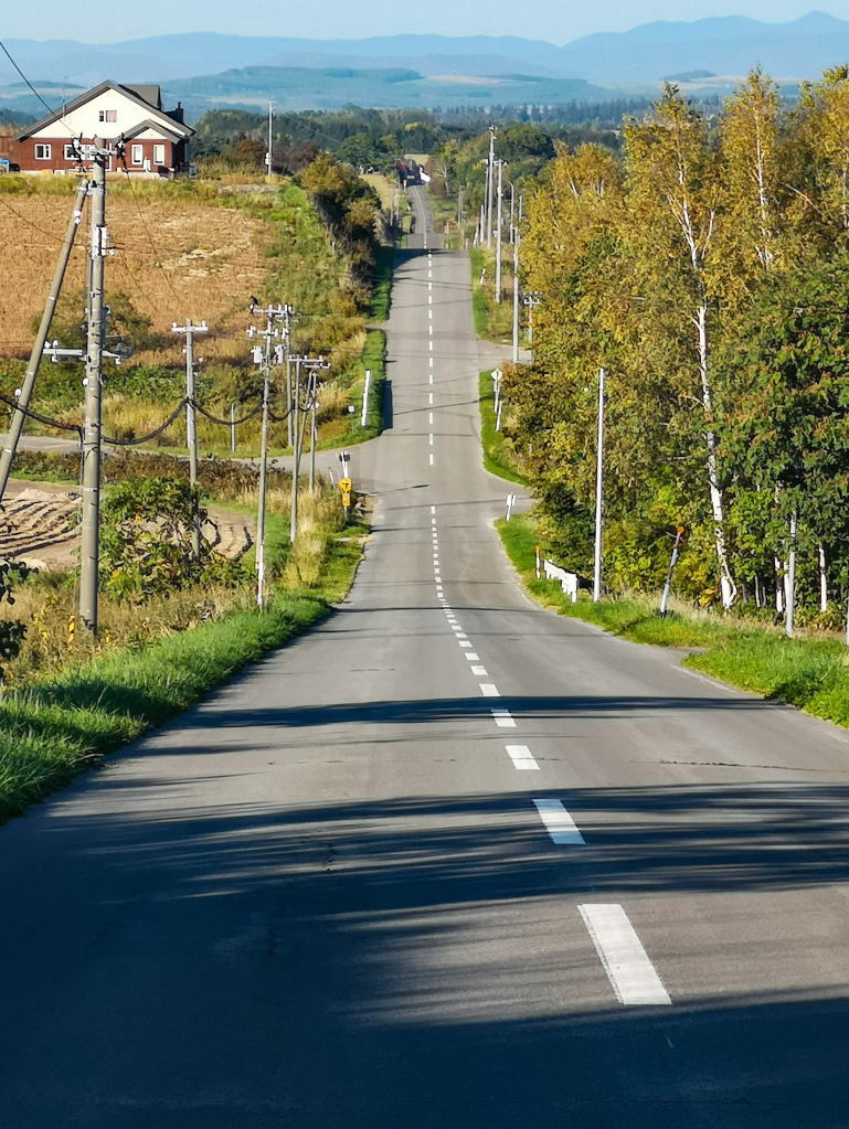 それではということで、近くのジェットコースターの路を見学。北海道らしく真っ直ぐな道で、上り下りが三回続くという道路。何だか写真に撮ると普通の道にしか見えない。