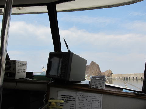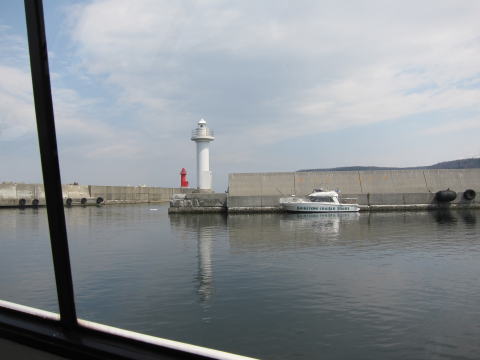 灯台の間を抜けて、ウトロ漁港を出て行く