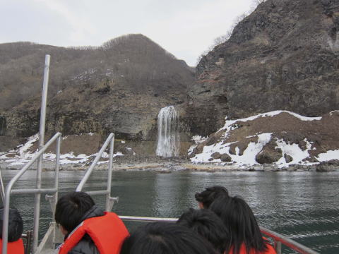 ヒグマに別れを告げると、今回のクルーズの折り返し地点、カムイワッカの滝に到着です。