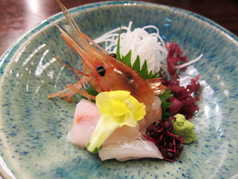 上のプレートのお料理を取って席に戻ってくると、ウェートレスの方が、「2日連泊された方にホテルからサービスとして一品プレゼント致します」と言って、ボタンエビとお刺身をサービスしてくださいました。こういうサービスは嬉しいですね。