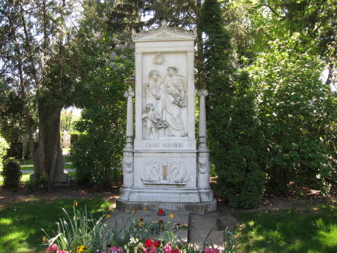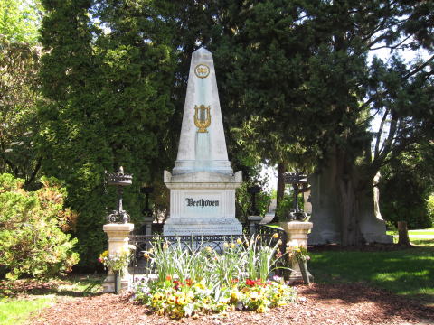 ベートーヴェン、シューベルト、ブラームス、ヨハンシュトラウス親子などの墓を見る。