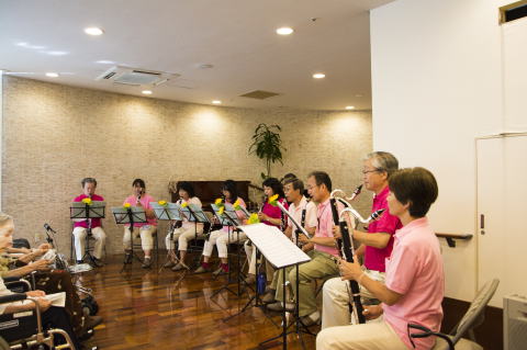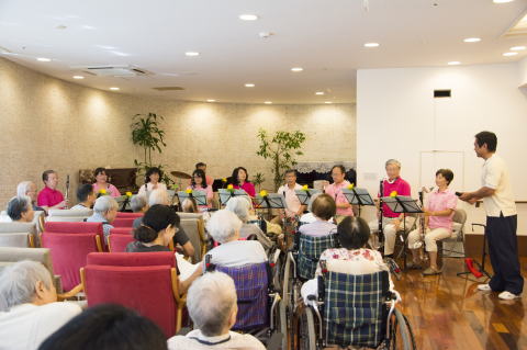 本牧のヒルデモア三景園にてコンサートを行いました。当日は、入園されている方々の暖かい声援に支えられ、楽しく演奏することができました。