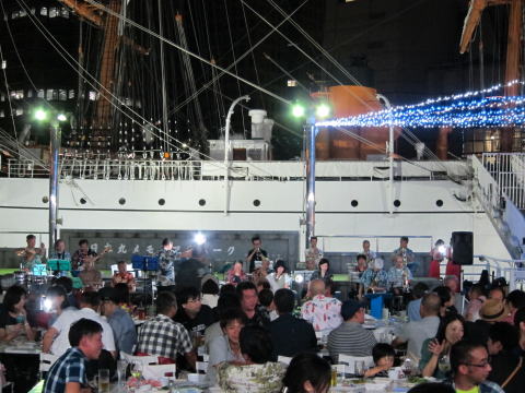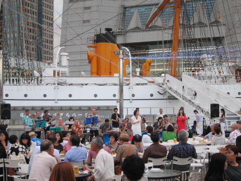 今日は、みなとみらいの日本丸前にある横浜パラダイス・ビアガーデンにてライブ。