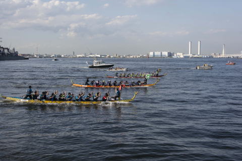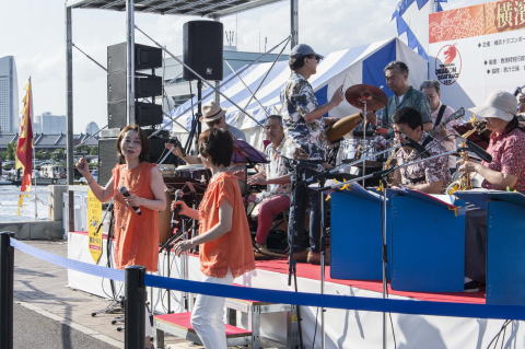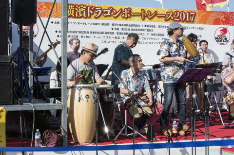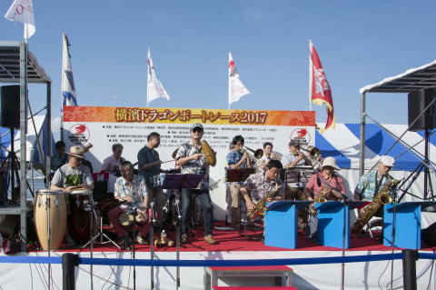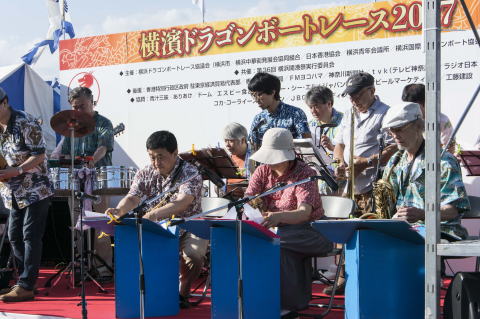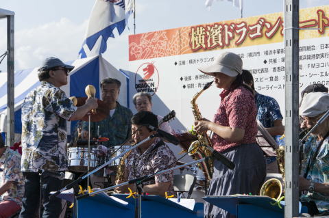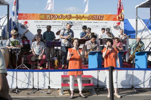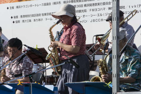 今日は毎年恒例、山下公園で開催されるドラゴンボートレースでの演奏です。