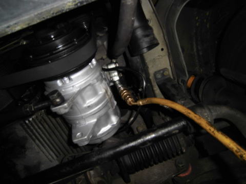 以前からエアコンのガスを入れても半年ぐらいするとエアコンの効きが悪くなっていました。どこからかガスが漏れているのかと思い、調べてもらった所、コンプレッサーの回転軸の部分にガタがあり、そこからガスが漏れていたようです。これは修理のしようが無いので、コンプレッサーごと交換です。新品は非常に高価なので、リビルト品を探してもらいそれを使うことにしました。