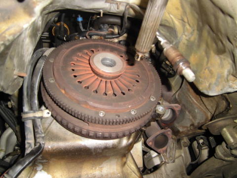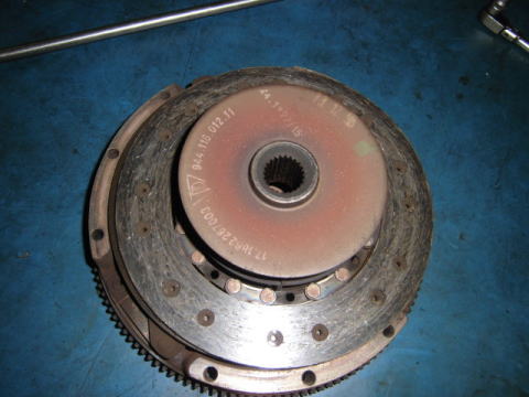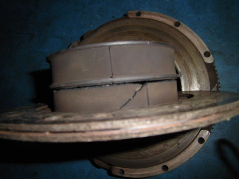 普通、クラッチの寿命はクラッチプレートが磨り減ってしまうことで寿命になると考えられますが、944の場合、このように、防振ゴムの方が先に切れて寿命になってしまうのです。このクラッチも、クラッチプレート自体はまだ半分程残っていました。