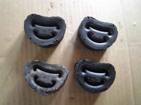 また、バックをする時などアイドリング近くの回転数でクラッチを繋ぐと、その振動がマフラーに伝わり、ガラガラを安っぽい異音がしていました。確認してもらうと、マフラーを吊っているゴムが古くなっているとの事。このゴムブッシュの交換もしてもらいました。