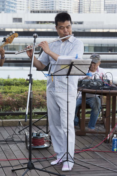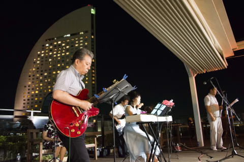 真夏の宵、素晴らしい眺望のビアガーデンでの演奏、気持ちよく演奏できました。