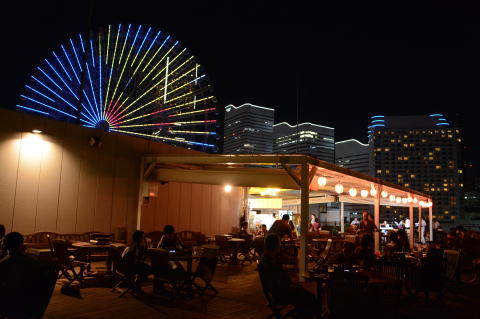 今日は、みなとみらいにある万葉の湯の屋上ビアガーデンでのライブです。