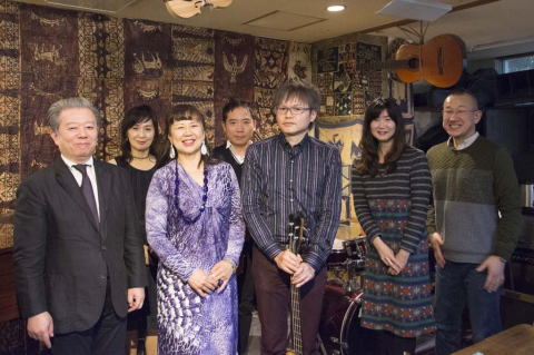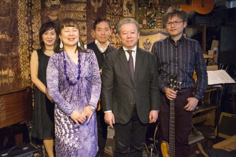 臼井さよ(Pf)、大島敏照(Bs)、松本理恵子(Vo)、ヒロ(Vn)、本岡秀孝(Gt)