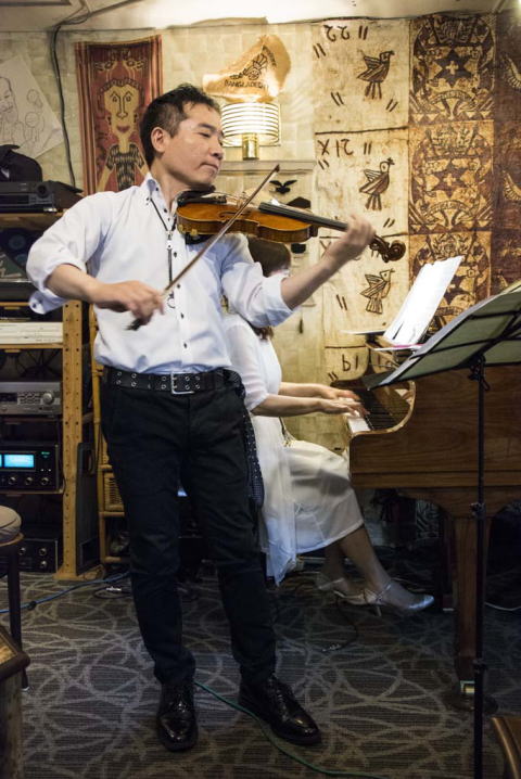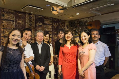 ヒロ(Vn)、本岡秀孝(Gt)、川口弥夏(Perc)
