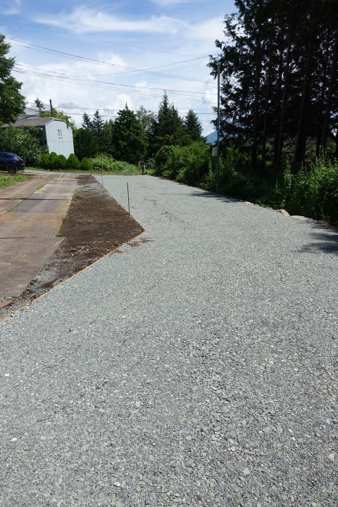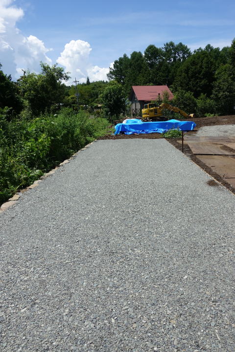 8月13日 東側道路からの進入路砂利敷き完了