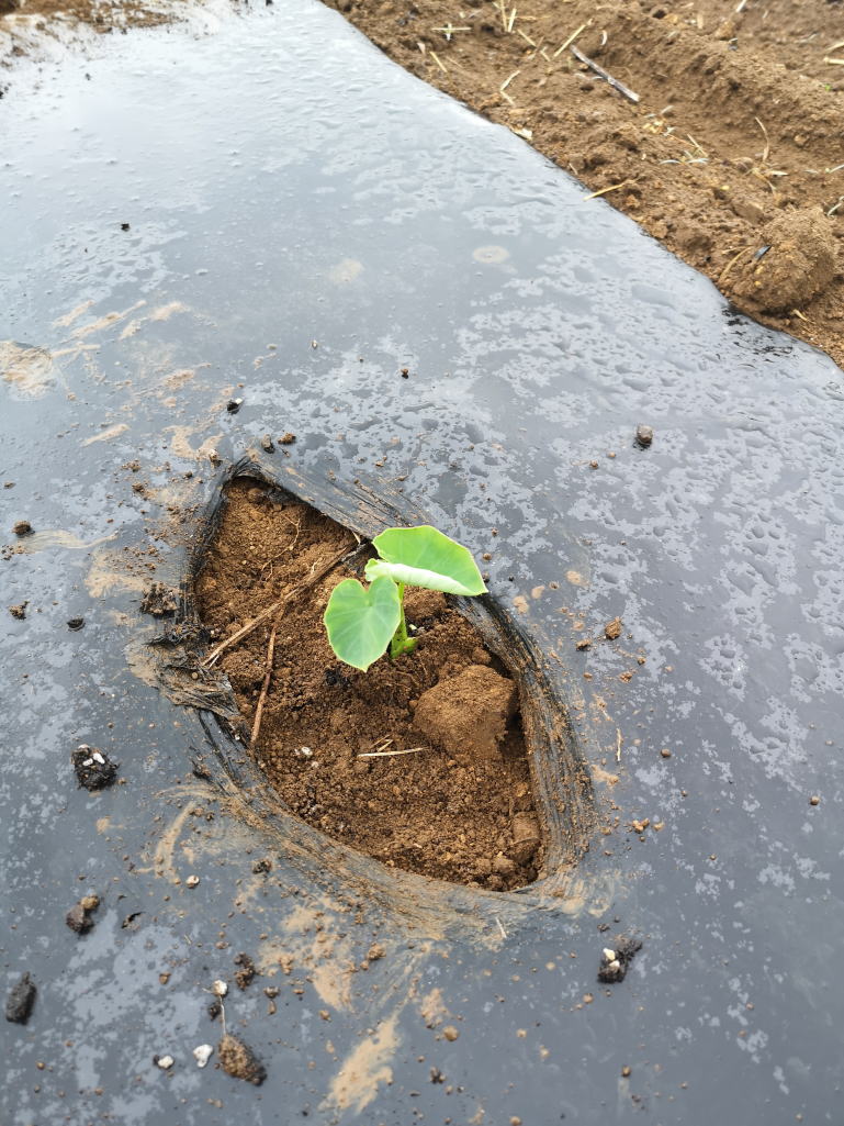これも初挑戦。里芋。どうやって育てるんだろう。